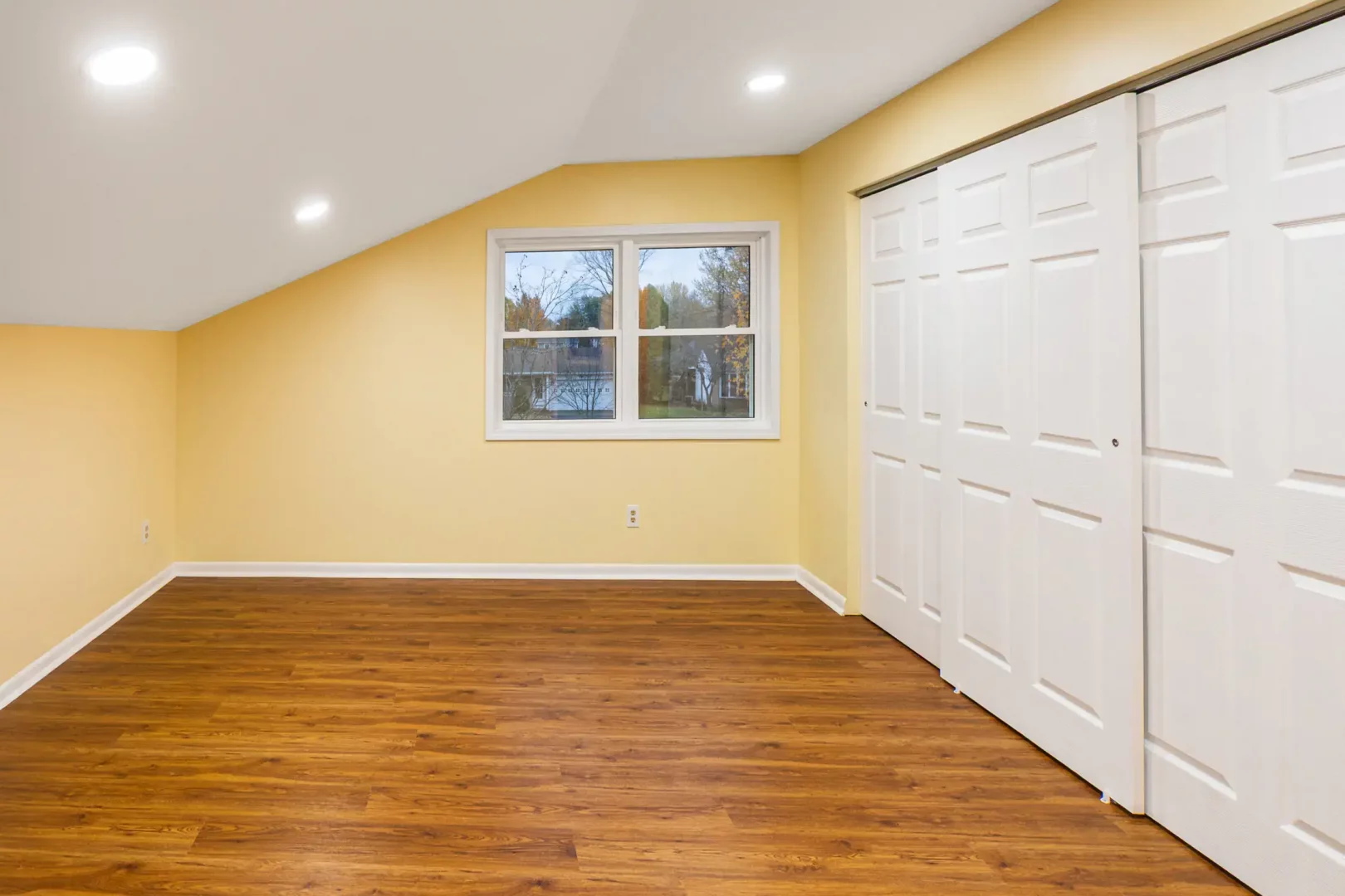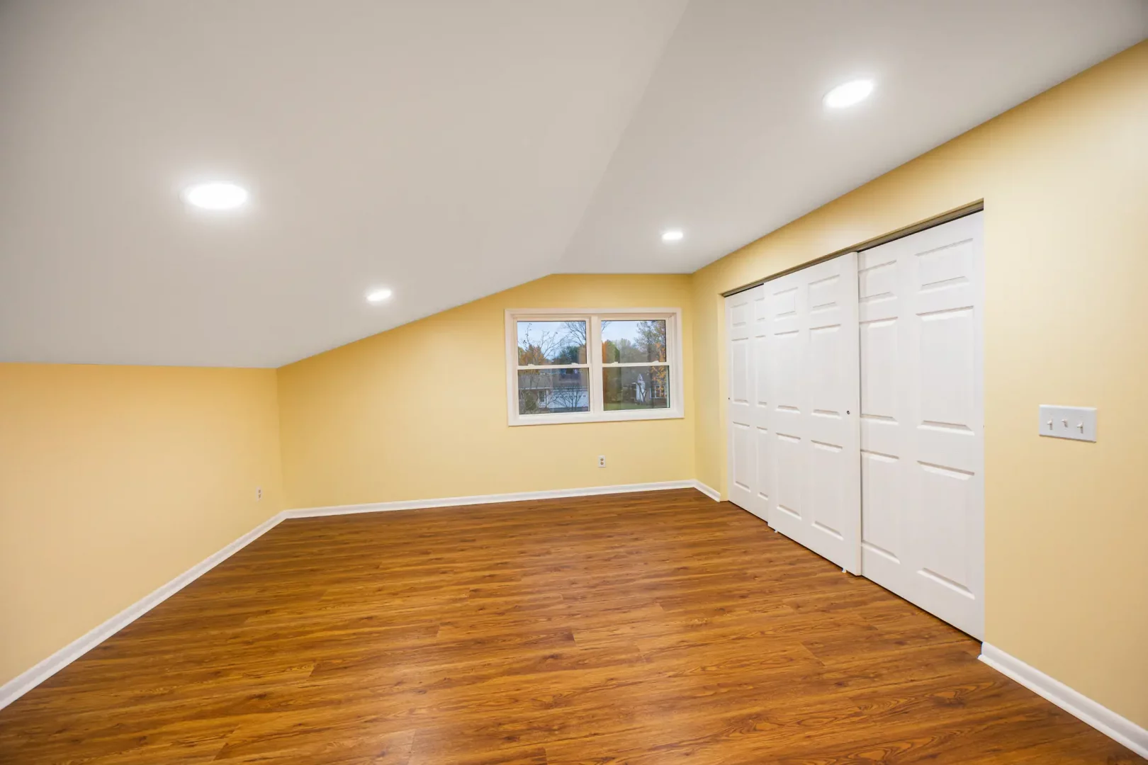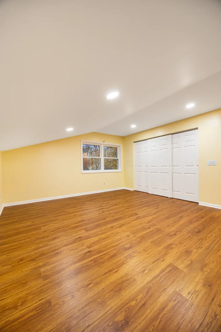 Our team completed a full refresh, including new flooring, updated wall finishes, and modern recessed lighting to create a clean, open feel. The remodel significantly improved brightness, flow, and overall comfort, giving the homeowners a versatile bedroom that feels fresh and welcoming.